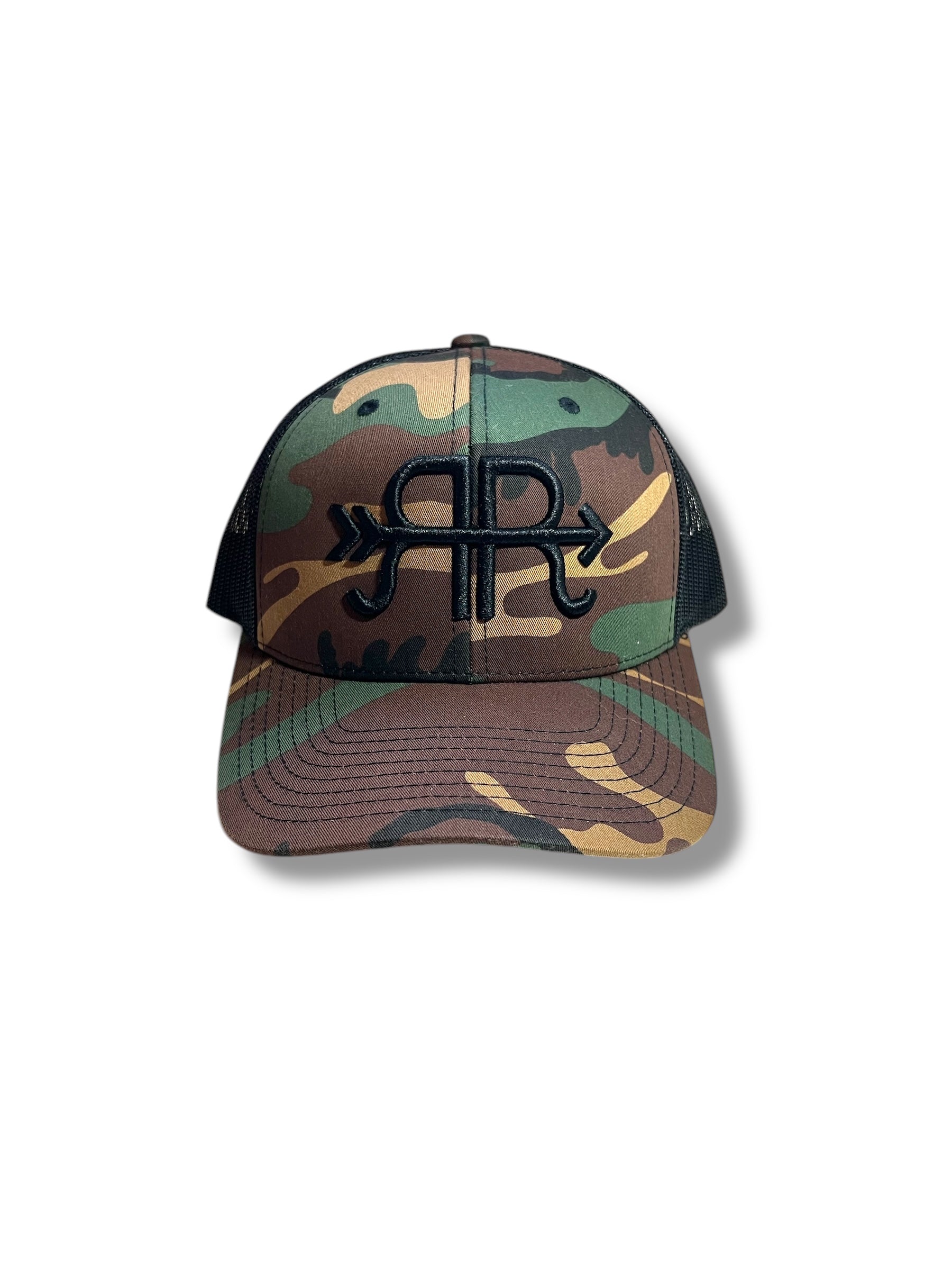 - Woodland Camo/ Black Retro Trucker Cap